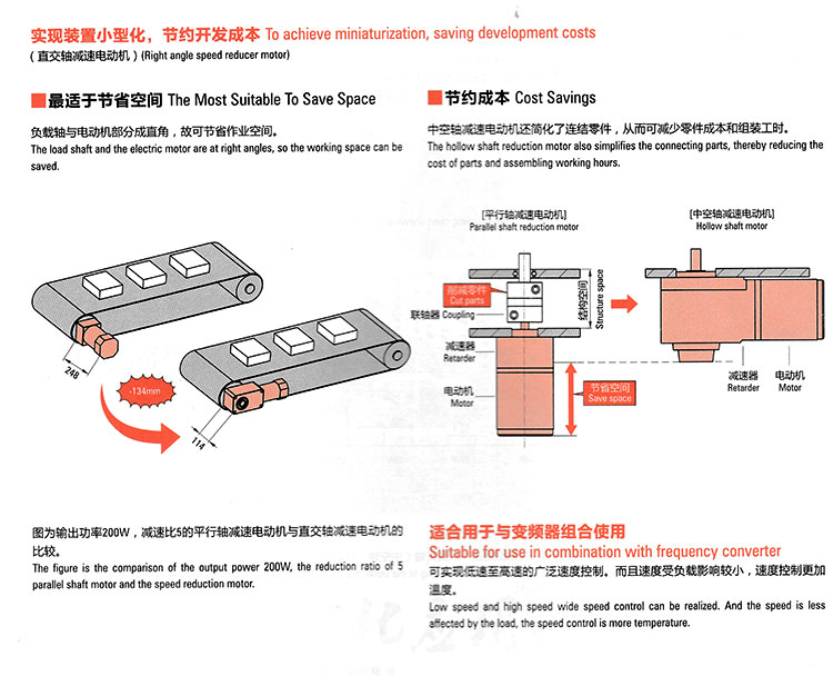 節(jié)約成本,中空軸減速電動機(jī)還簡化了連結(jié)零件,從而可減少零件成本和組裝工時。